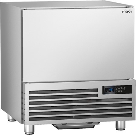 Abatitor, capacitate 5xGN1/1, suprapozabil, productivitate 20 kg in 90 minute de la +90°C la +3°C sau 12 kg in 240 minute de la +90°C la -18°C, comenzi electronice, structura inox AISI304, camera de racire cu colturi rotunjite, gaz refrigerant R290, izolatie din poliuretan- grosime 55mm, picioare inox ajustabile in inaltime, dimensiuni 754x700x820(h) mm, alimentare 230V, putere 820W