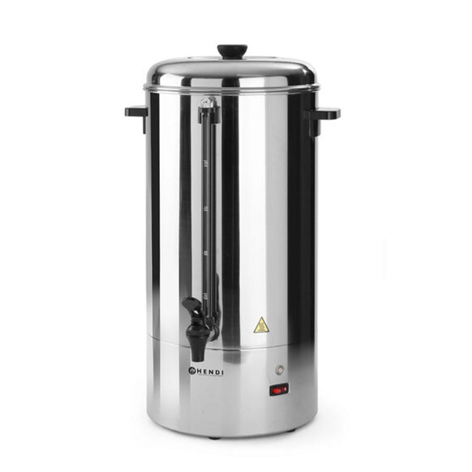 Cafetiera -capacitate 10 litri, filtru integrat pentru cafea macinata, functioneaza automat, mentine temperatura de servire a cafelei exterioara, robinet non-picurare, echipat cu indicator de curatare si resetare automata, inox, dimensiuni 384x355x530hmm, alimentare 220V, putere 1500W