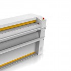 Calandru cu uscare, electric, lungime cilindru 2580mm, diametru cilindru 325mm, cilindru polisat, benzi de calcare cu nomex rezistente pana la temperatura de 200grC, reglarea electronica a temperaturii, viteza de calcare 1.6-5 m/min, productivitate orara 75kg, dimensiuni: 3140x580x1150h mm, greutate 780kg, alimentare 380V, putere 27000W