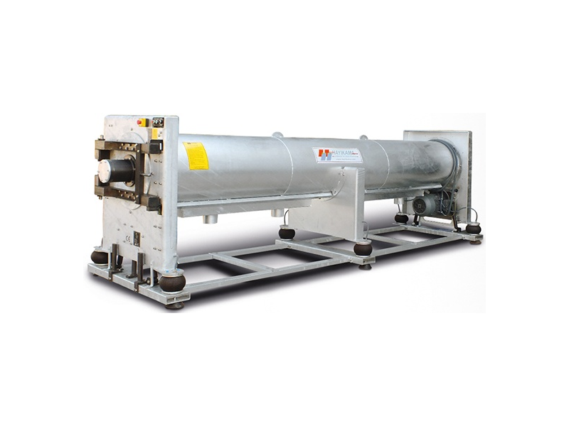 Centrifuga automata pentru starcere covoare, sistem cu senzor de protectie, sistem antivibratii cu perne de aer si amortizoare, sistem de rotatie ajustabil electronic, cuva reversibila, cuva exterioara galvanizata, cuva interioara din inox AISI304, grosime inox 5mm, diametru cuva: 470mm, latime maxima covor 420 cm, dimensiuni: (Lxlxh mm): 5000x1400x1500, greutate 1450 kg, viteza de rotatie 1000rpm, productivitate orara: 480m2/h, alimentare 380V, putere 11000W