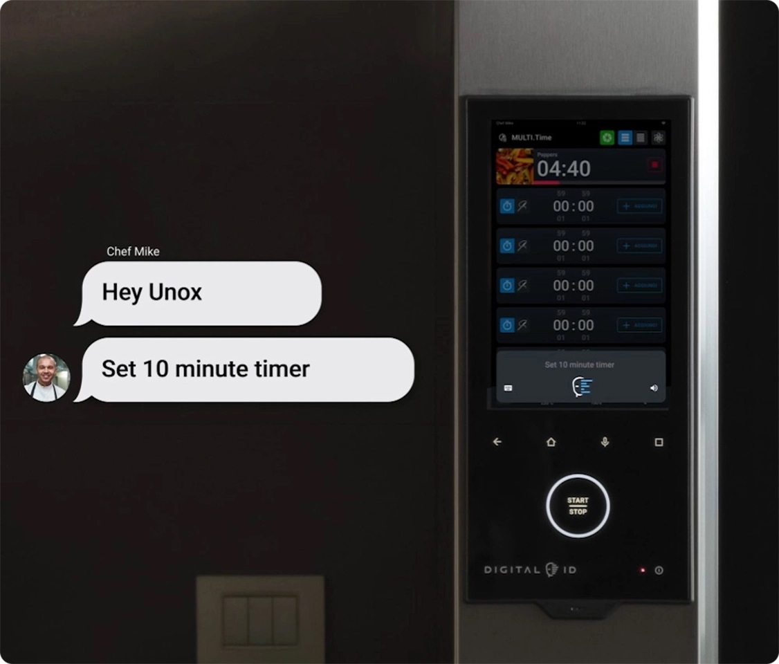 Spune "Hey.Unox"pentru ajutorul hands-free. Datorita unui microfon integrat de ultima generatie si a unor algoritmi puternici, poti interactiona cu cuptorul tau pur si simplu folosind vocea. Este timpul sa iti simplifici munca in bucatarie