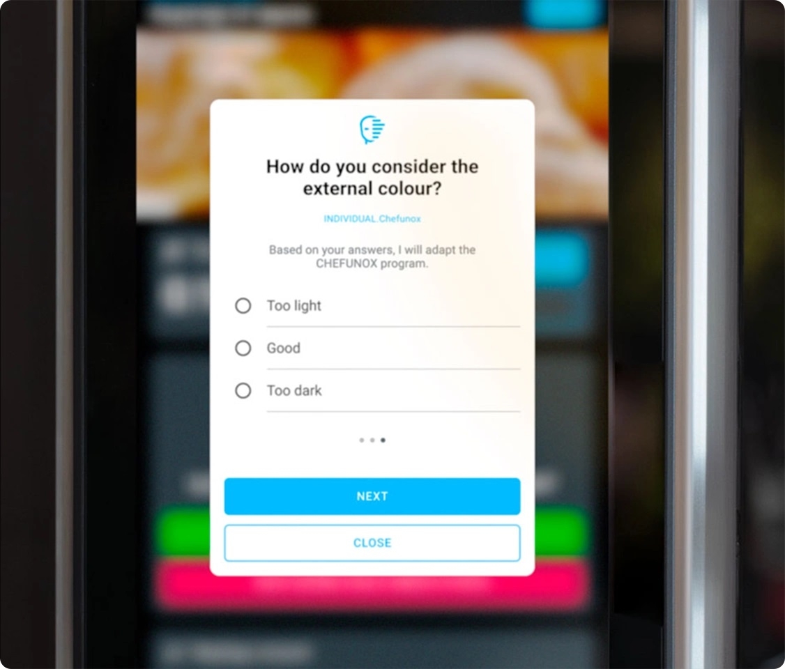 Cand procesul de coacere este gata cuptorul asteapta feedback-ul tau pentru a-si imbunatati performantele de gatit. Inteligenta artificiala aplica feedback-ul tau pentru a gati fiecare ingredient exact asa cum iti doresti