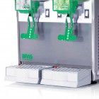 Distribuitor bauturi racoritoare, cu pompa cu efect fantana, 2 grupuri, capacitate 2x20 litri, cuva din policarbonat, structura portanta din inox, compresor ermetic, sistem de amestecare independent pentru fiecare cuva, temperatura ajustabila, nivel de zg