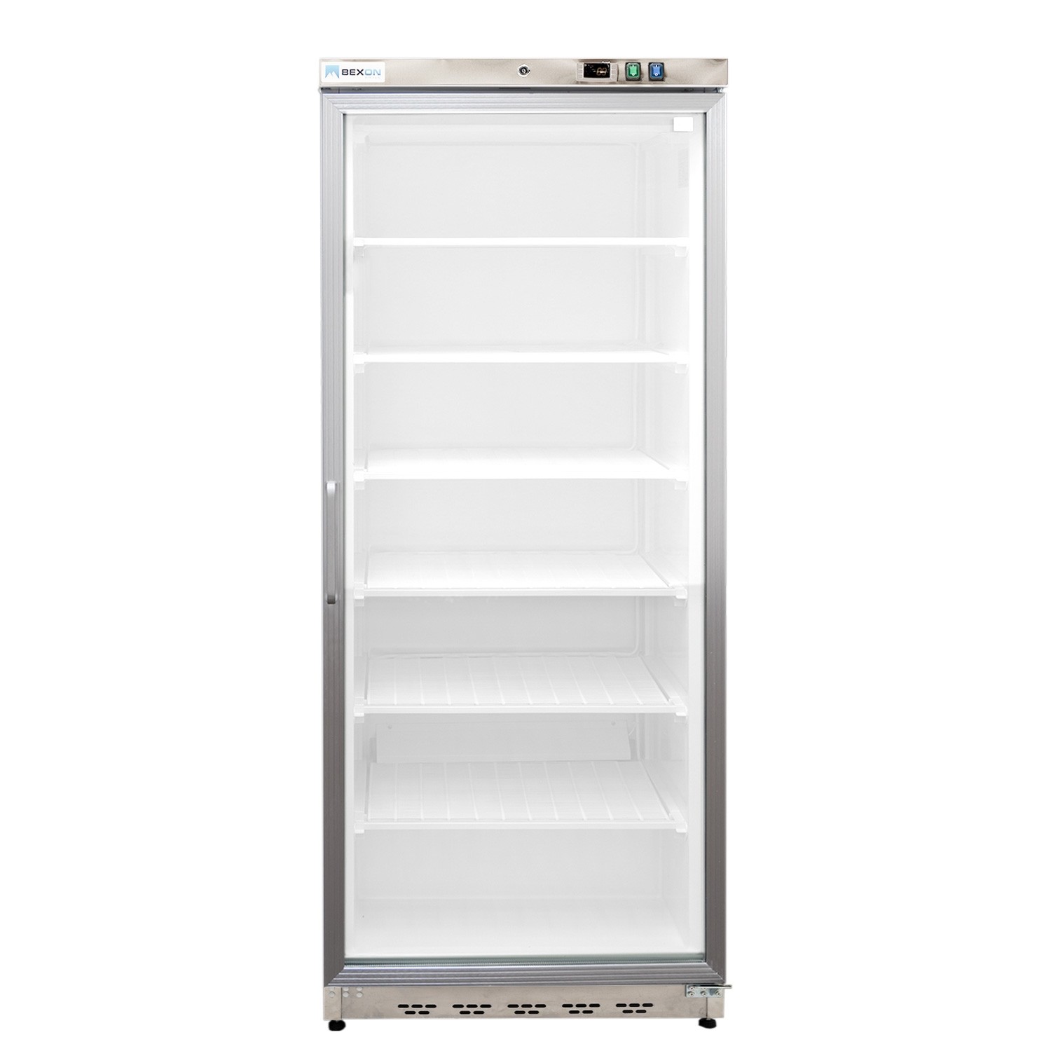 Dulap congelare cu usa din sticla, capacitate neta 550 litri, temperatura de lucru -22/-10°C (la temperatura ambientala de 32°C si umiditate relativa 55%), refrigerare statica, gaz refrigerant R290, exterior din inox, interior ABS, 6 polite, picioare ajustabile, dimensiuni 775x750x1850hmm, alimentare 220V, putere 220W