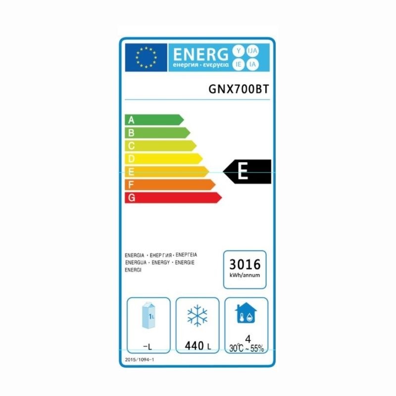 Dulap de congelare, volum 700 litri, temperatura de lucru -18/-22°C(la temperatura ambientala de 30°C si umiditate relativa 55%), 3 polite, racire ventilata, gaz refrigerant R290, decongelare automata, iluminare interna, inchidere cu cheia, dimensiuni 740x830x2010hmm, alimentare 220V, putere 640W, greutate 138kg