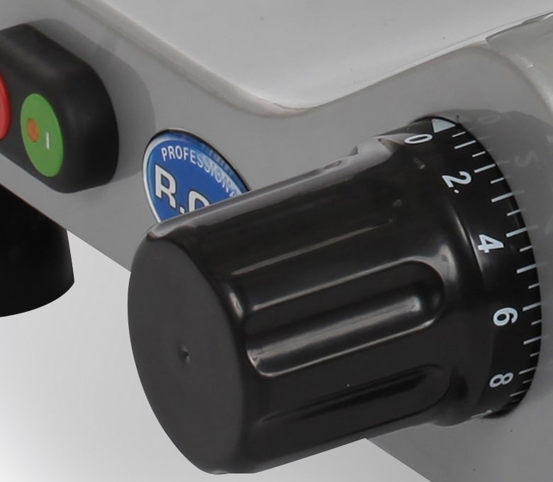 Feliator mezeluri, diametru lama 300mm, structura aluminiu, cursa carucior 270mm, capacitate de taiere 235x200mm, motor ventilat, dimensiuni: 455x315x420h mm, greutate 24kg, putere 160W, prevazut cu centralina CEP