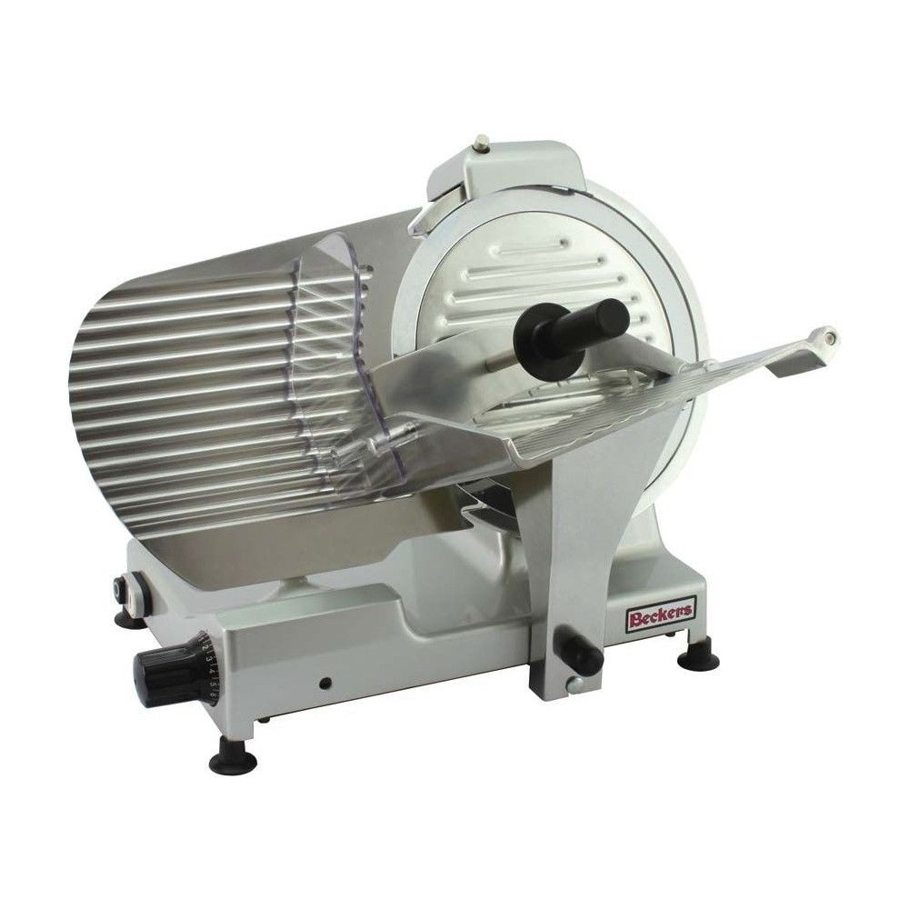 Feliator mezeluri -culoare alb, diametru lama 250mm, structura aluminiu, cursa carucior 235mm, capacitate de taiere 210x130mm, motor ventilat, lama RASSPE, switch on/off, dimensiuni 510x390x380hmm, putere 160W, greutate 15.5kg