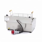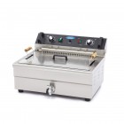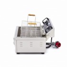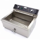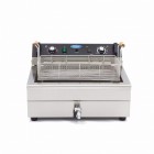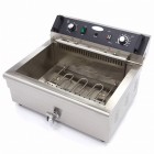 Pregatiti cantitati mari de alimente in bucataria dumneavoastra profesionala? Aceasta friteuza foarte mare, cu o capacitate de 20 de litri, este un accesoriu binevenit pentru orice brutarie, pescarie, magazin de chipsuri sau alte facilitati de catering. Clientii nu mai trebuie sa astepte in timp ce prajiti cu pricepere portii mari de peste, cartofi prajiti si alte gustari prajite. Aceasta friteuza profesionala are doua elemente de incalzire care pot fi setate cu ajutorul termostatului de precizie. Puteti alege o temperatura dorita intre 50°C si 200°C. Aceasta friteuza are, de asemenea, un indicator luminos practic care arata cand uleiul este gata. Functioneaza la o tensiune de 400V.