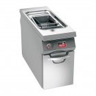 comenzi digitale, structura inox 18-10, grosime 2mm, suport inchis cu acces pe ambele parti, temperatura controlata electronic, afisaj electronic, robinet pentru descarcarea cuvei, temperatura de lucru pana la +190grC cu precizie +/-1grC,termostat de siguranta, dimensiune (LxlxH mm): 400x1100x720, alimentare 380V, putere instalata: 7,3kW