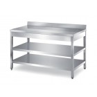 Masa, cu 2 polite, cu plan de lucru ranforsat cu blat din PAL, inox, inaltator la perete, dimensiune (LxlxH mm): 3000x600x850