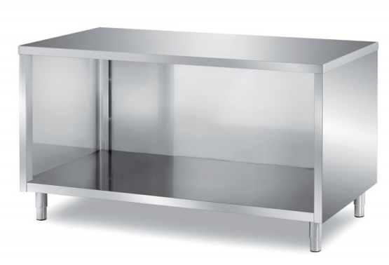 Masa, inchisa pe 3 parti, cu colturi rotunjite, structura din inox, picioruse reglabile pe inaltime, dimensiune (LxlxH mm): 800x700x890, greutate 46Kg