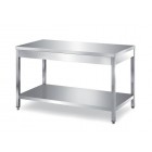 Masa inox, cu o polita intermediara, plan de lucru ranforsat cu blat din PAL, picioare reglabile, dimensiuni: 2300x800x850h mm