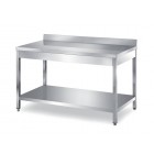 Masa inox, cu plan de lucru ranforsat cu blat din PAL, inaltator la perete, dimensiuni: 2700x800x850h mm