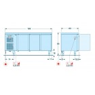 Masa rece cu 3 usi, blat de lucru din inox, cu inaltimea de 60mm, capacitate 325 litri, temperatura de lucru 0°C/+10°C (temperatura ambientala +43°C), structura inox AISI304, sistem de refrigerare cu evaporator pozitionat in exteriorul camerei, gaz refrigerant R404a, decongelare si evaporare automata a apei de condens, termometru/termostat electronic, picioare ajustabile in inaltime, alimentare 220V, dimensiuni 1850x600x900mm, greutate bruta 151kg, putere 550W