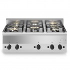 Masina de gatit, alimentare gaz, 5 ochiuri, model de banc, butoane din polimer termorezistent de culoare neagra, plan din inox AISI304 cu grosime 8/10mm, dimensiuni 900x600x300hmm, putere totala gaz 17400W, greutate 22kg