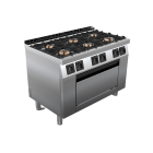 Masina de gatit alimentare gaz, 6 arzatoare cu coroana dubla, cuptor cu alimentare gaz, inox, dimensiuni 1200x730x900hmm, putere totala 43700W, greutate 135kg