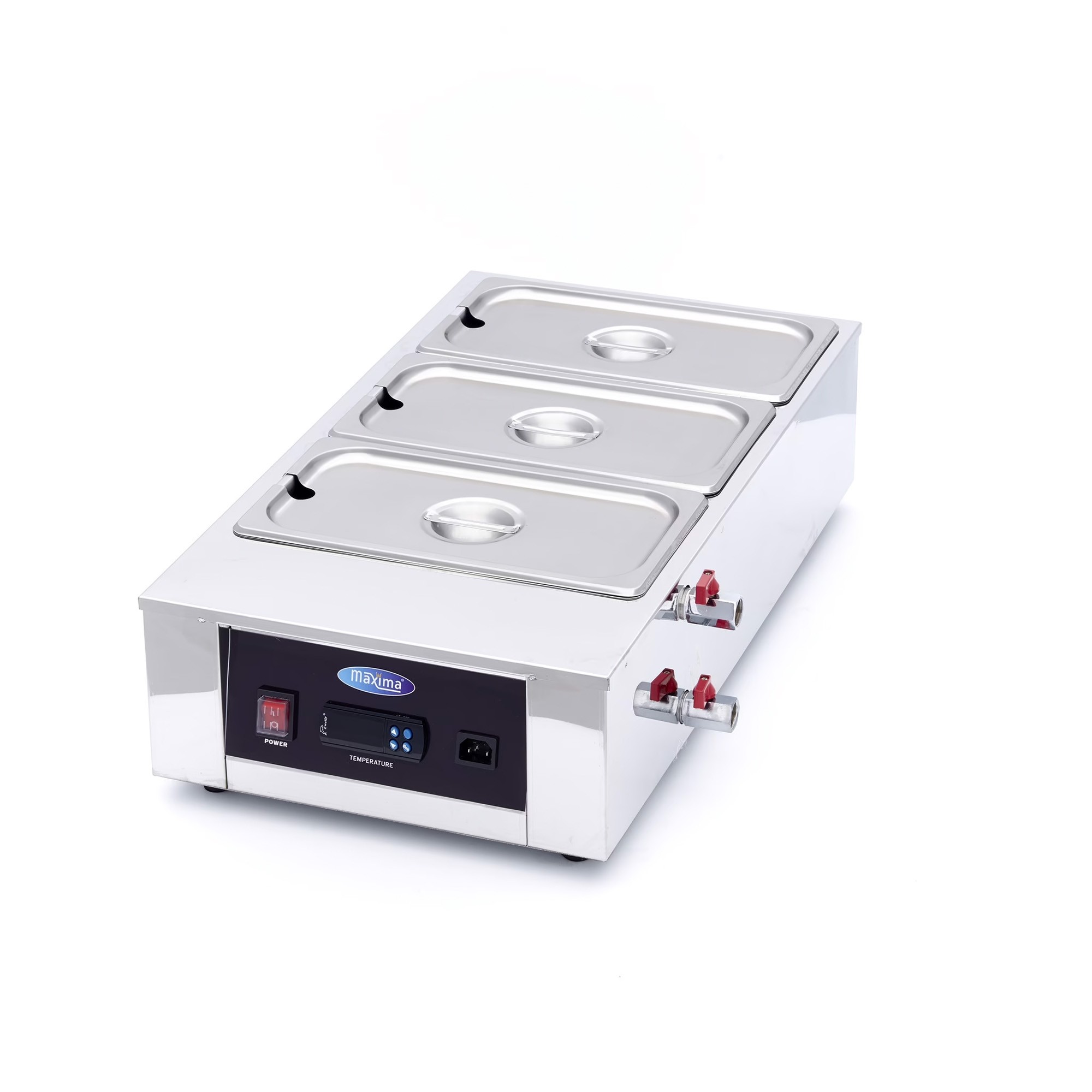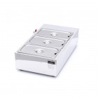 Echipat cu 3 recipiente GN 1/3 cu o adâncime de 10 cm, puteti topi ciocolata rapid si usor, fara ca aceasta sa se arda. Acest topitor de ciocolata functioneaza pe principiul au bain marie, ceea ce inseamna ca apa incalzita asigura topirea uniforma a ciocolatei.