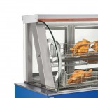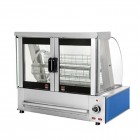 Rotisor electric rotativ cu geam curb pentru pui, echipat cu 4 cosuri cu lungimea de 680 mm, capacitate 12-16 pui, inox, sertar pentru colectarea grasimilor, termostat +300grC pentru controlul temperaturii, dimensiune (LxlxH mm): 940x590x790, alimentare 380V, 5400W