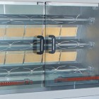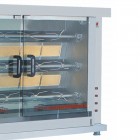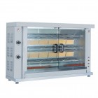 Rotisor pe gaz cu 3 axe, capacitate 12-15 pui, lungime axa 1030 mm, rotatie independenta pentru fiecare axa, inox, iluminare interna, sertar pentru colectarea grasimilor, valva de siguranta, termocupla, arzator cu infrarosu din ceramica, mdimensiune (LxlxH mm): 1320x570x1800, putere: 10kW