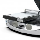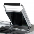 Tostiera dubla, electrica, suprafata neteda din ceramica -asigura distribuirea uniforma a caldurii, ceramica de culoare neagra, control manual, tehnologia Protek.SAFE -elimina pierderile inutile de caldura reducand consumul (caldura se concentreaza astfel asupra suprafetei de gatit), temperatura maxima de lucru 400°C, temperatura reglabila, maner din plastic, tava colectare grasimi, picioare antiderapante, dimensiuni suprafata de lucru 250x250mm/250x250mm, dimensiuni 619x458x176hmm, alimentare 220V, putere 3000 W, greutate 17kg