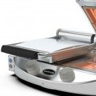 Tostiera dubla, electrica, suprafata neteda din ceramica -asigura distribuirea uniforma a caldurii, ceramica transparenta, control manual, tehnologia Protek.SAFE -elimina pierderile inutile de caldura reducand consumul (caldura se concentreaza astfel asupra suprafetei de gatit), temperatura maxima de lucru 400°C, temperatura reglabila, maner din plastic, tava colectare grasimi, picioare antiderapante, dimensiuni suprafata de lucru 250x250mm/250x250mm, dimensiuni 619x458x176hmm, alimentare 220V, putere 3kW, greutate 17kg