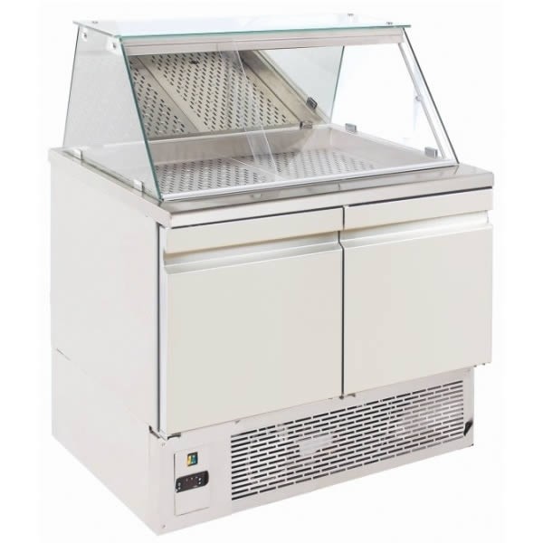 Vitrina de expunere, cu 2 usi, capacitate 194 litri, temperatura de lucru +0°C / +3°C, termostat electronic si decongelare automata, motor pozitionat in partea inferioara, dimensiuni 890x700x1200h mm, putere 1/5hp, alimentare 220V, greutate 91kg