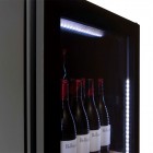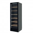 Vitrina pentru expunere sticle vin, capacitate 197 sticle - volum 368 litri, temperatura de lucru +5/+22°C, gaz refrigerant R600a, iluminare LED, culoare neagra, dimensiuni 595x595x1850hmm, alimentare 220V, consum 479W/h