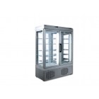 Vitrina verticala dubla pentru produse refrigerate, capacitate 935lt, temperatura +2°C/+10°C, culoare argintie, refrigerare statica, expunere pe 4 laturi, plan fix(compartimente separate), dimensiuni: 1320x640x1880h mm, greutate 278kg, putere 800W