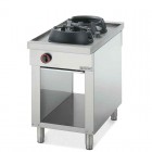 Wok cu 2 arzatoare model DRAGONE, inox AISI304 cu grosime 2.5mm, in partea superioara, scurgere pentru apa cu filtru reziduuri, inele arzatoarelor din fonta dura, flacara pilot si valva de siguranta pentru gaz, arzatoare din bronz, baza deschisa, picioare reglabile in inaltime, dimensiune 550x1100x900h mm, putere gaz 24000W